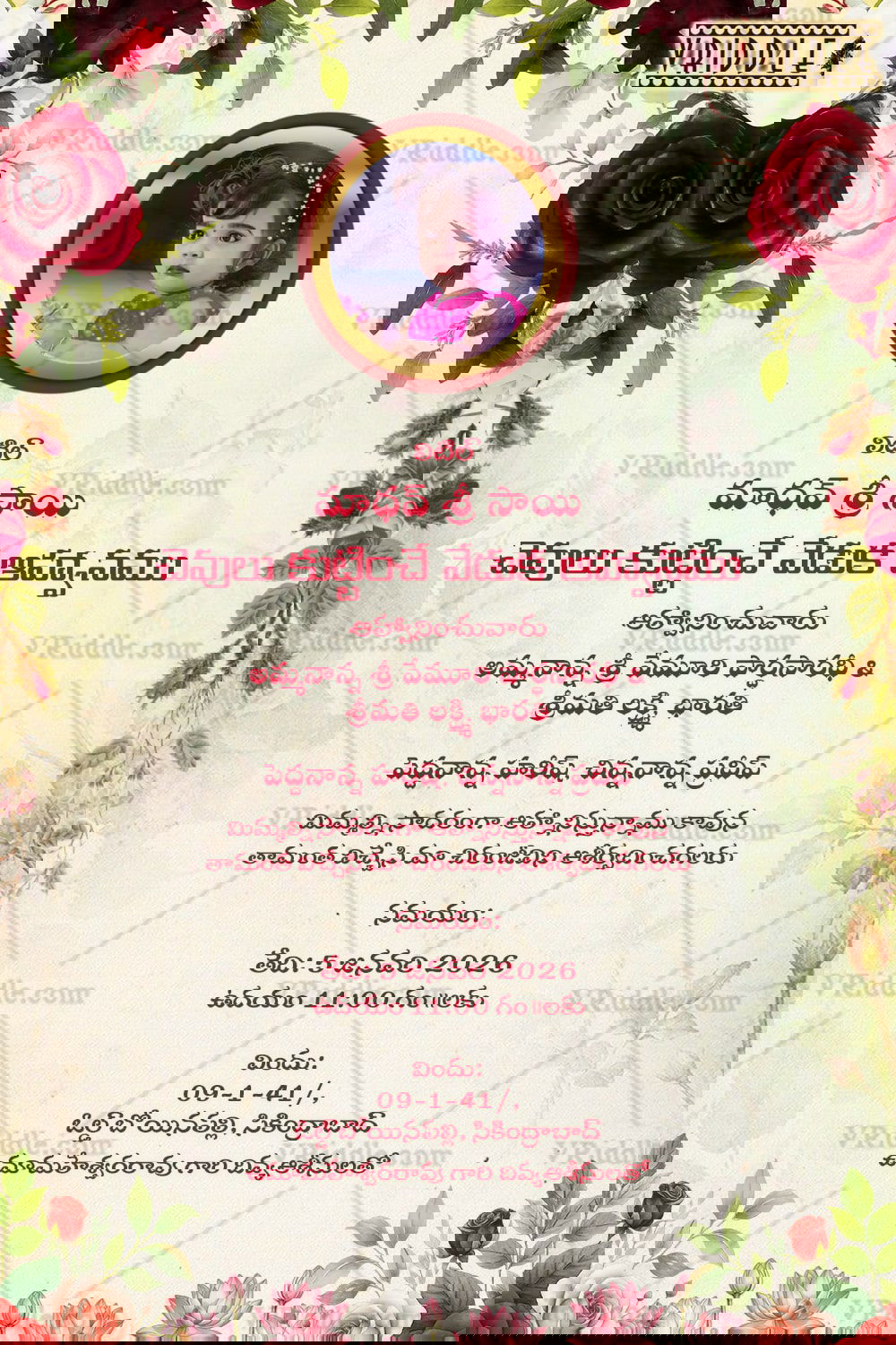 #ParojanCeremony #FloralInvitation #BabyPortraitCard #TraditionalInvite #ElegantDesign #ParojanCelebration #IndianCeremony #CulturalInvite #LotusTheme #TeluguInvitation