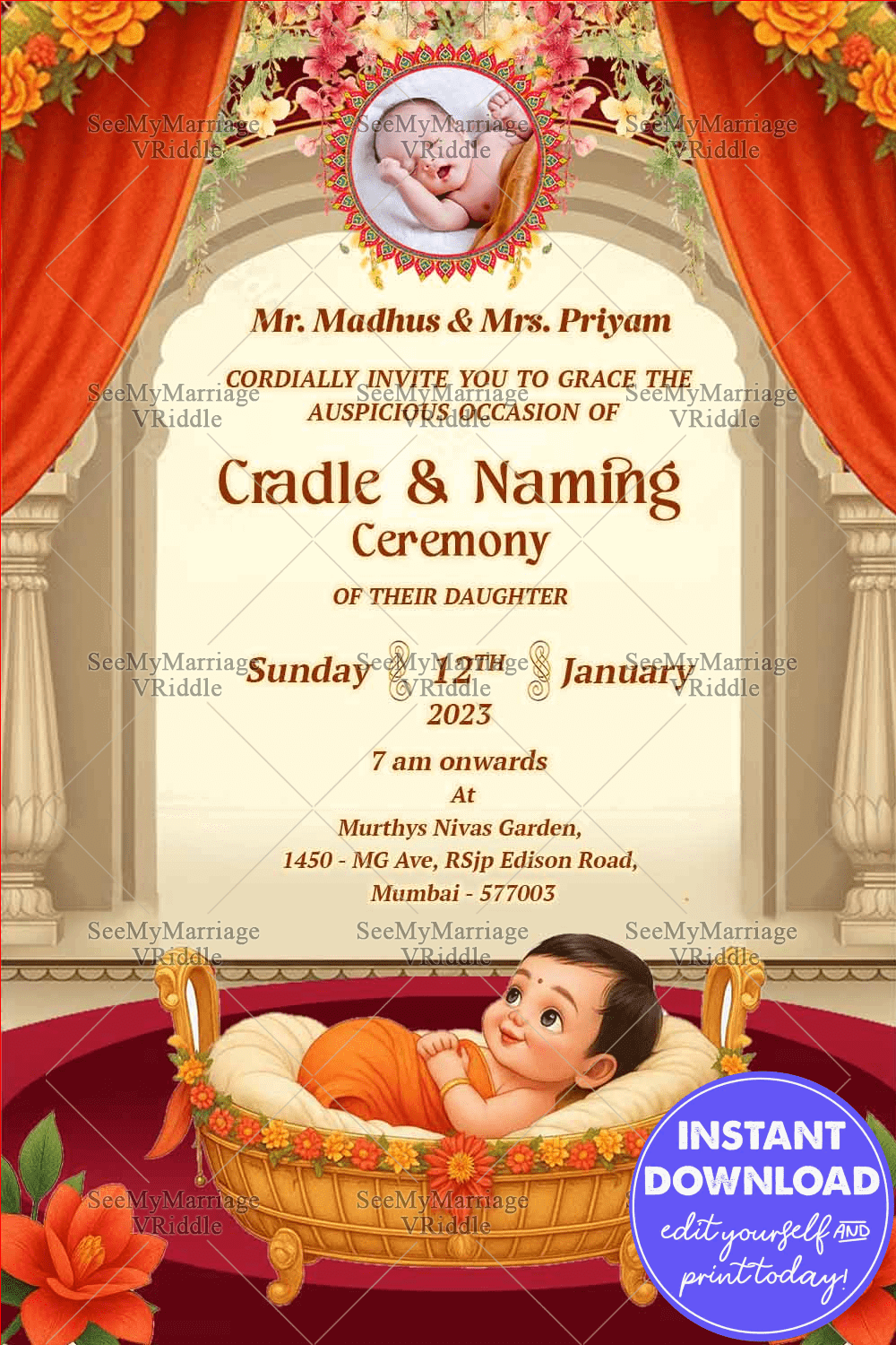 #CradleCeremony #NamingCeremonyInvite #TraditionalInvitation #BabyGirlBlessing #FloralThemeInvite #IndianBabyCeremony #ElegantCradleCard #NewBeginnings #CeremonyVibes